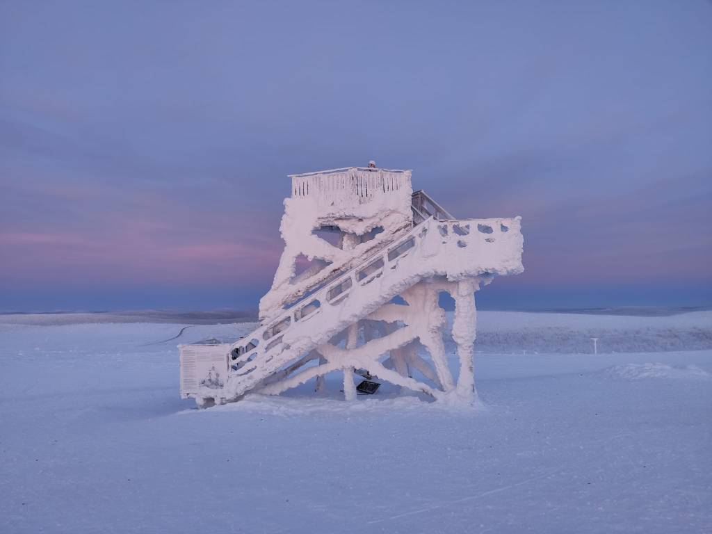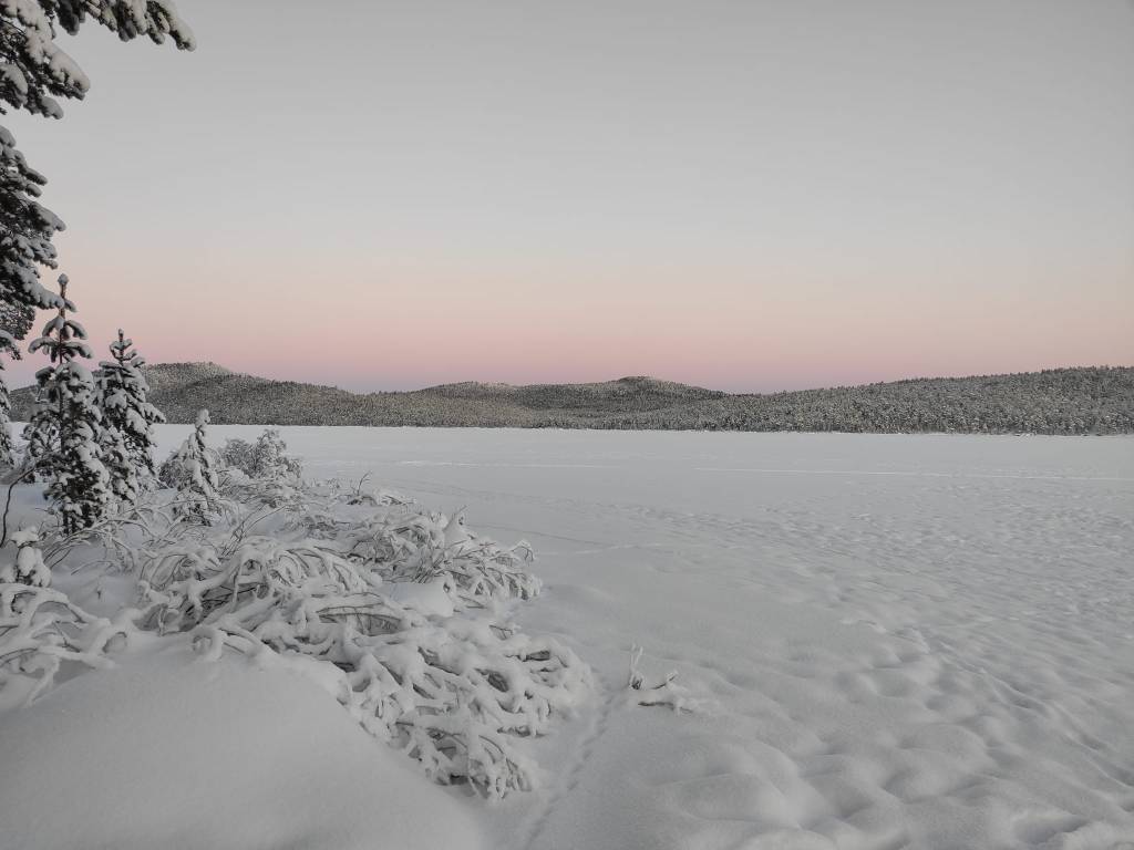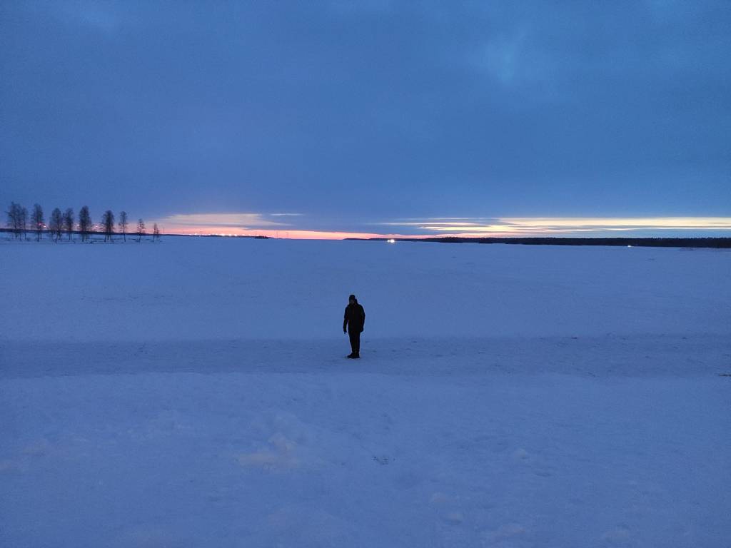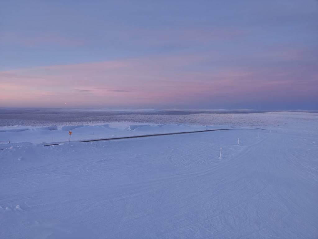 Il bus ci riporta a Saariselka e prima di tornare al nostro appartamento improvvisiamo una visita in cima ad una vicina collina dove si trova una torre di avvistamento: lo spettacolo che ci si presenta è oltre ogni immaginazione, il bianco della neve si fonde con il rosa appena all’orizzonte, che a sua volta sfuma nel blu della notte polare, in cui alba e tramonto sono una cosa sola e il Sole non si fa vedere mai! Questa visita si scoprirà essere fondamentale per il più grande colpo di fortuna, che giungerà il giorno successivo.