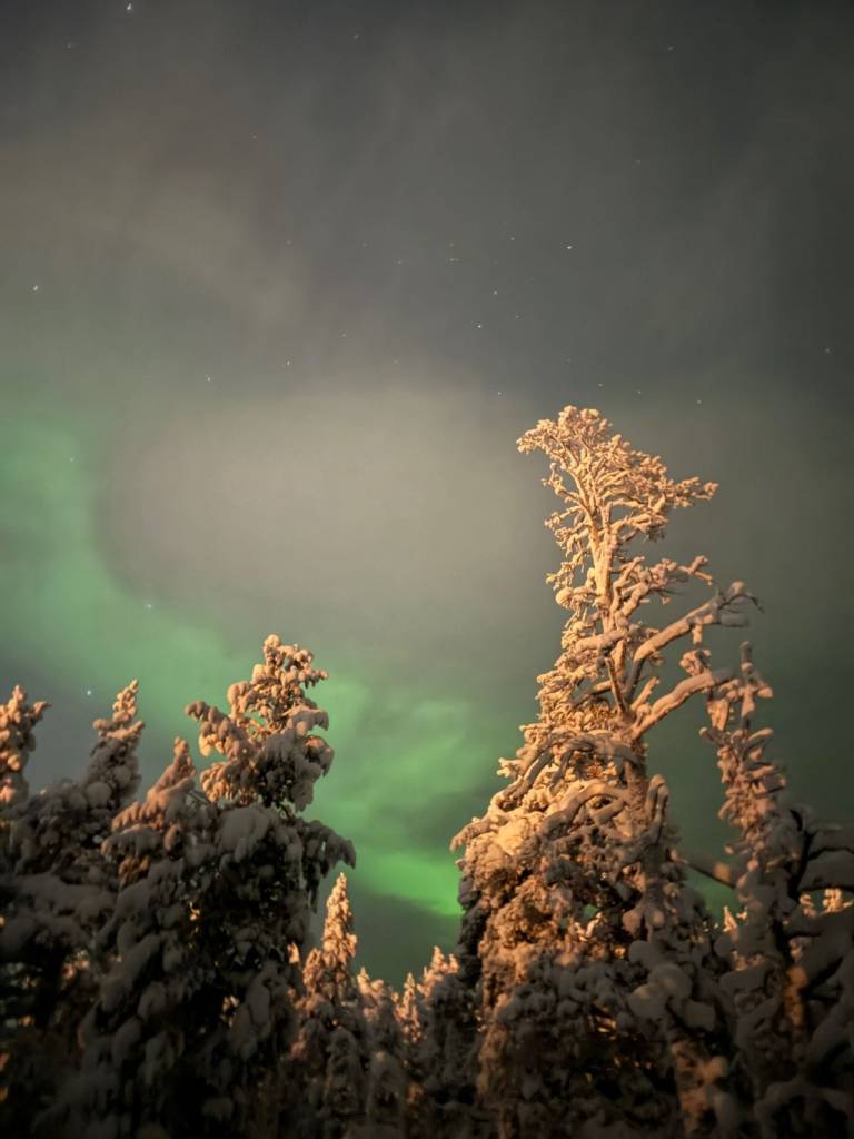 Anche stasera l’aurora fa la timida, ma va già meglio della volta precedente, riuscendo a intravedere aloni verdi decisamente più intensi. In ogni caso è stata un’esperienza talmente soddisfacente (3 ore di cammino e cioccolata calda tra i boschi per 70 € a testa), che non rimaniamo per niente delusi.