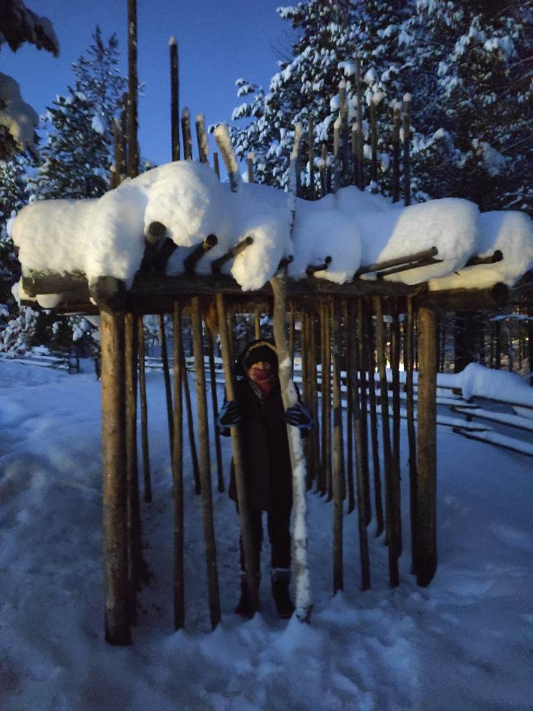 Giungiamo finalmente a Inari, capitale dei Sami in Finlandia, di per sé villaggio privo di grandi attrattive, ma base di partenza per gite (molto a nord, suggerisco la “più vicina” Saariselka) e sede del museo Siida della cultura Sami, che andiamo a visitare quando ormai inizia a fare buio: il museo è molto interessante e affronta ogni aspetto che caratterizza questa etnia (che parla e scrive una lingua assolutamente incomprensibile di cui lascio tra le foto un esempio), in particolare molto ben fatta la parte all’esterno in cui sono riprodotte le abitazioni e le strutture tipiche.