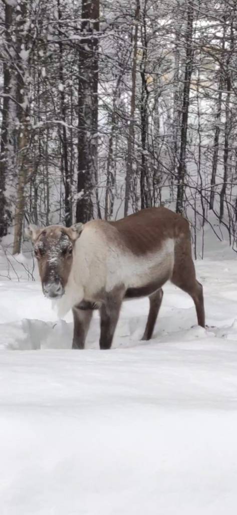 Ripartiamo per il nord e la strada di ritorno da Nellim, isolata e priva di passaggio di macchine, ci regala un incontro che aspettavamo ormai da giorni: incontriamo due diverse tipologie di renne selvatiche, che abbiamo arbitrariamente deciso trattarsi di Renne di montagne e Renne delle foresta della Finlandia.