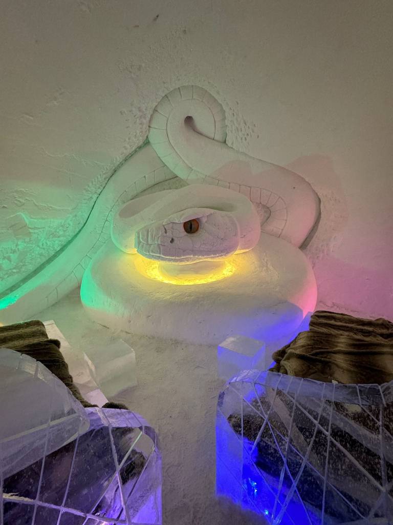 Ripartiamo quando ormai la poca luce è già quasi del tutto scomparsa (quindi circa alle 14:30) per raggiungere l’Arctic SnowHotel, a circa 45 minuti dal villaggio di Babbo Natale, visitabile per 30 € a testa anche se non si pernotta o non si cena lì. Questa volta, a differenza del LumiLinna, è una spesa che consiglio, perchè la struttura e le sculture al suo interno sono incredibili! E’ possibile esplorarlo tutto in autonomia, entrando in ogni stanza e scoprendo che ognuna è caratterizzata da un diverso tema. Consigliatissimo!
