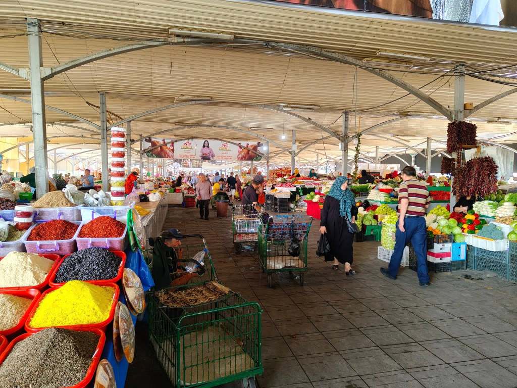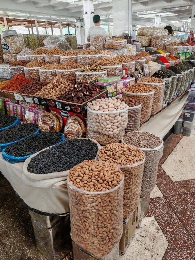 Dopo il pisolino mattutino chiamiamo un altro Yandex e ci facciamo portare al Bazaar Chorsu, un gigantesco tendone che custodisce un altrettanto enorme mercato alimentare: i prodotti sono maniacalmente suddivisi per zone e ordinati nelle bancarelle al limite del disturbo ossessivo compulsivo! Per fare un esempio, nella zona delle uova, sono presenti SOLO uova e sono tutte impilate in piramidi perfette che vengono reintegrate ad ogni acquisto!