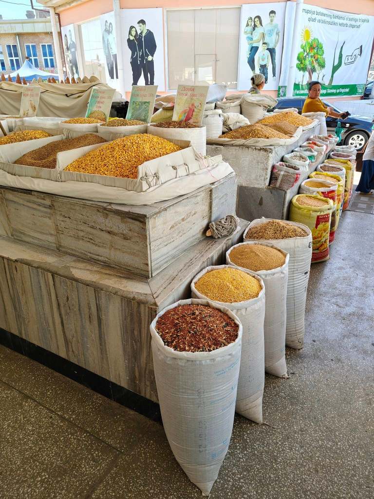 Come se non bastassero le dimensioni mastodontiche, l’intero bazaar è circondato da altre bancarelle che vendono altro cibo, vestiti, oggettistica varia, in un caos ordinato difficile da descrivere. Assaggiamo qui al mercato il nostro primo nan, il tipico pane uzbeko decorato e cotto sulle pareti e sul soffitto interno al forno.