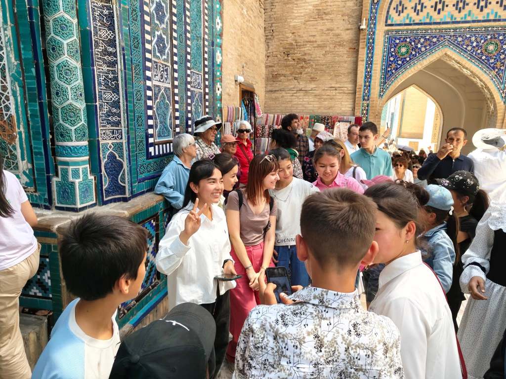 Al contrario, la nostra meta successiva, Shah-i-Zinda, è forse il luogo più caotico e turistico dell’intero Uzbekistan: è un viale costellato di mausolei meravigliosi, che vi farà entrare istantaneamente in una favola ambientata nel medio oriente di “spezie e bazaar” della Mille e una notte. Qui siamo stati entrambi star per un giorno dei giovani e delle giovani uzbeke (imbarazzantissimo), che ci hanno chiesto di scattare dei selfie con loro, ovviamente le ragazzine rigorosamente con Elisa e i ragazzini esclusivamente con me!