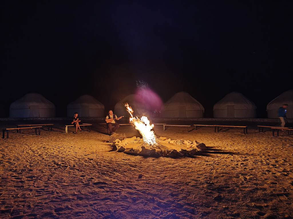 Dopo cena veniamo intrattenuti intorno ad un falò da un suonatore Kazako, che ci delizia con la musica tradizionale. Il resto della sera lo passiamo a chiacchierare con una coppia italo-francese e ad osservare gli enormi scarabei e scarafaggi che sono venuti allo scoperto con le tenebre!