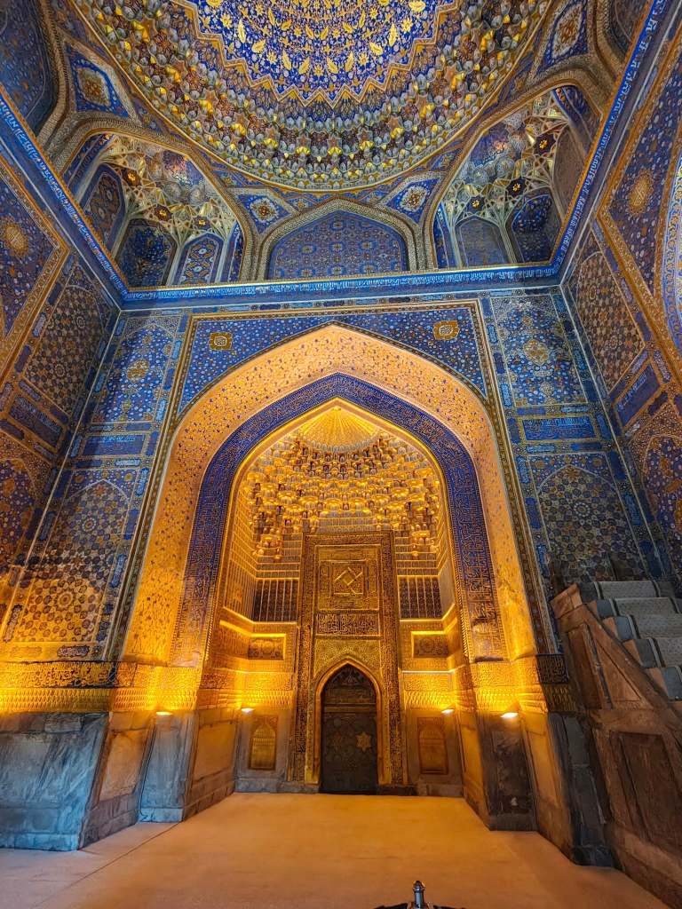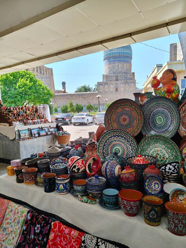 Prima di prendere possesso dell’appartamento, abbiamo iniziato la visita della città, dal Mausole di Amir Timur (Tamerlano, l’eroe nazionale), prima vera struttura in quello che riconosceremo poi essere lo stile architettonico tipico uzbeko, e primo luogo in cui ci rendiamo conto che non esiste limite a dove la popolazione locale può posizionare un negozio, comprese le catacombe del mausoleo, piene di souvenir e di cimeli del comunismo!
