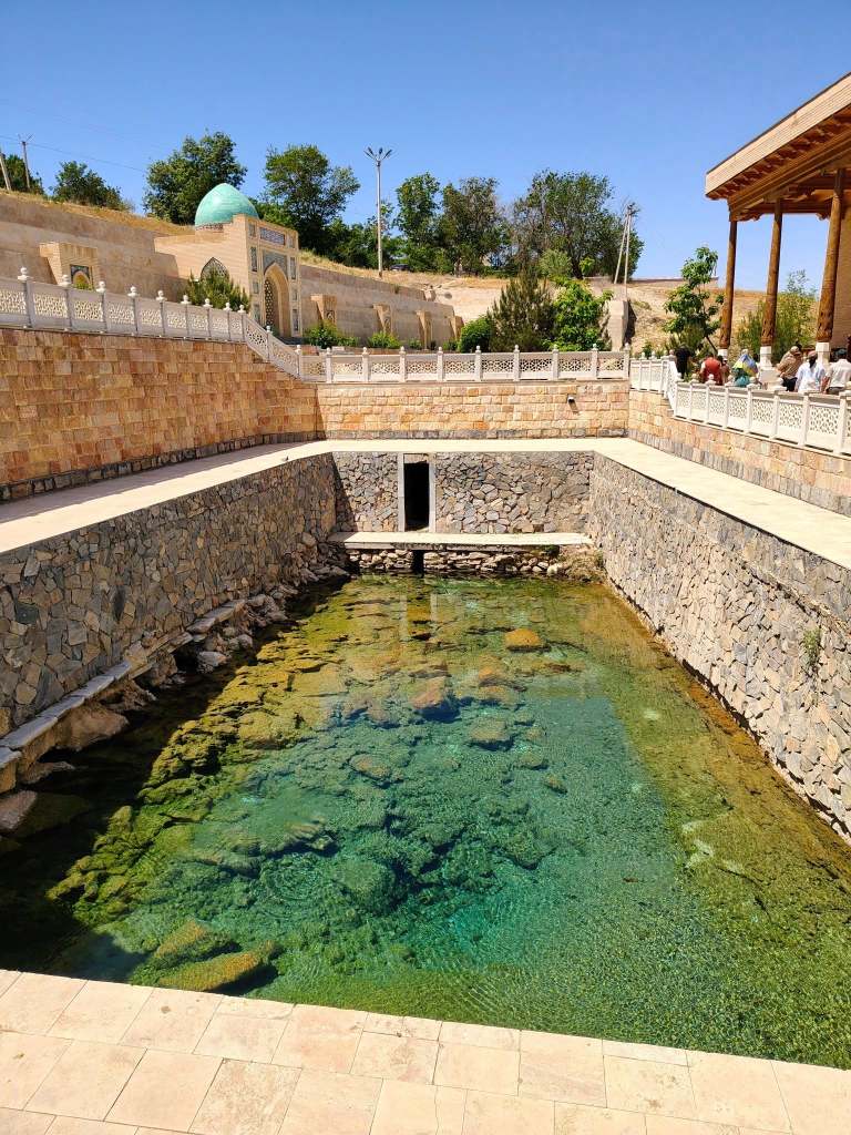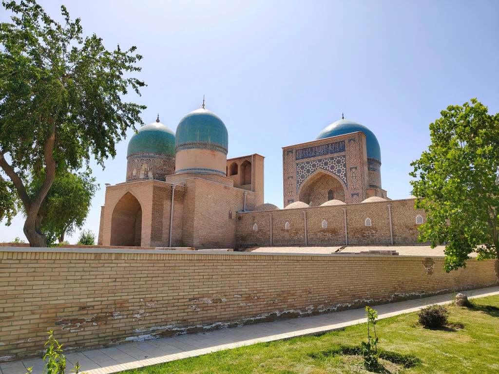 Abbastanza innervositi dal caldo atroce, dall’incertezza per il ritorno e del fatto che la città sembra deserta, mangiamo un gelato e iniziamo ad esplorarla: si tratta della città natale di Tamerlano, patrimonio UNESCO, di cui però purtroppo è rimasto solo un gicantesco (e tutto al sole) giardino pubblico, con alle estremità alcuni monumenti, primo tra tutti Ak-Saray, il palazzo del condottiero, non particolarmente interessanti e mal conservati.
