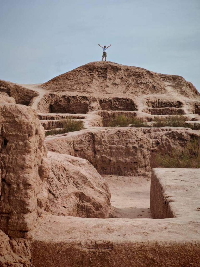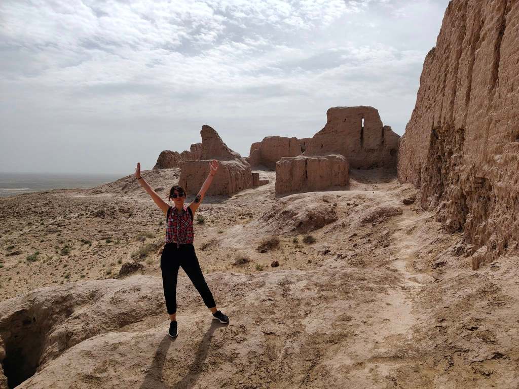 A circa metà strada ci fermiamo per un pranzo da “camionisti in trattoria uzbeka”, dove Elisa è l’unica donna presente e gli uomini pranzano seduti su una specie di gigantesco divano con al centro un basso tavolino. Le tre fortezze visitate (Ayaz Kala, Toprak Kala e Kizil Kala) purtroppo si trovano solo alla fine del viaggio, nelle vicinanze dell’arrivo, quindi non servono a spezzare le lunghe ore in macchina.