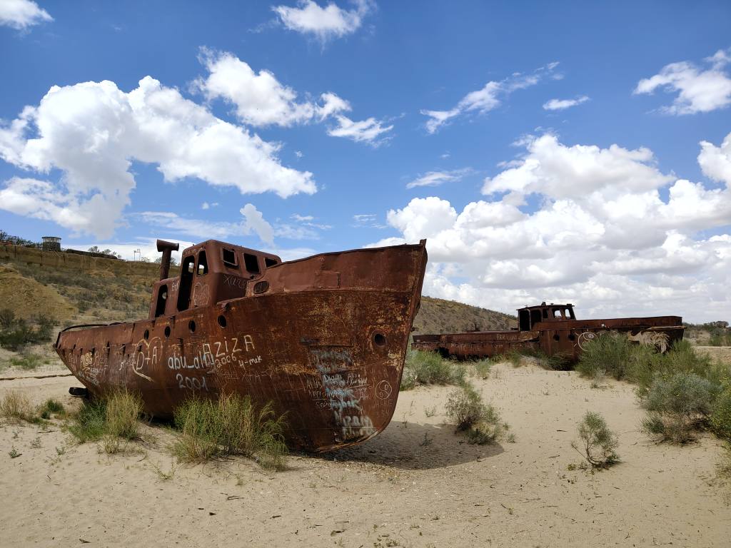 Ripartiamo subito per Moynaq, città simbolo del disastro del Mare di Aral, dove è presente un museo (assolutamente sconsigliato, costoso e privo di ogni interesse) e il cimitero delle navi, ovvero 9 navi allineate nella sabbia del deserto che un tempo era il grande lago. Tempo di visita totale non più di mezz’ora.