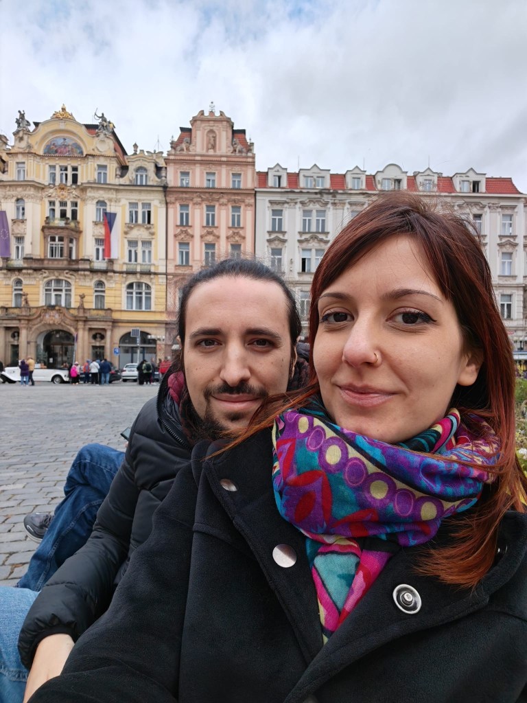 Dopo un’ora e mezza di volo, Praga ci accoglie con pioggia, vento e sole tutti insieme, alternati, poi di nuovo tutti insieme, facendo impazzire tutti: ombrelli aperti senza pioggia e persone senza ombrello che cercano un riparo quando piove si alternano senza sosta!